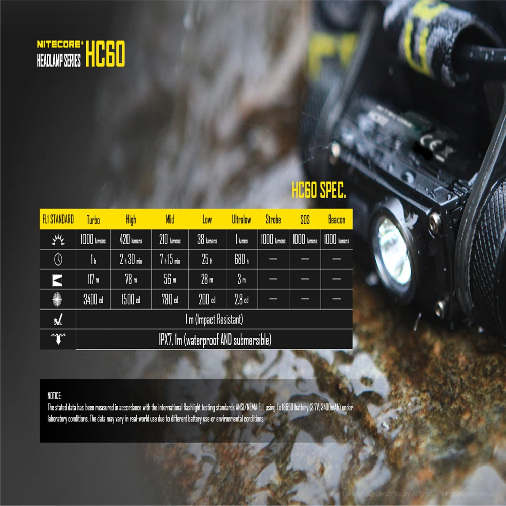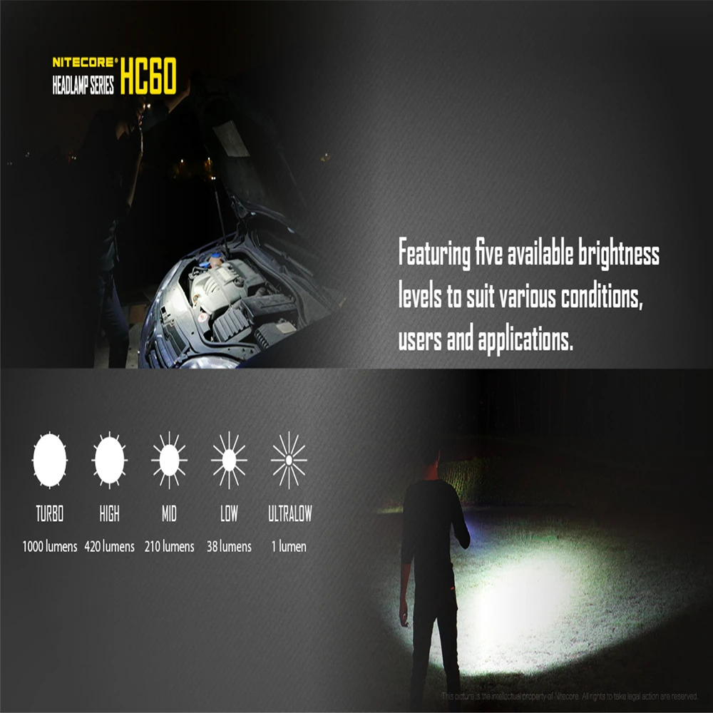 Promo Nitecore HC60 Scheinwerfer 1000 Lumen CREE XM-L2 U2 LED USB Aufladbare mit 3400mAh 18650 Batterie EDC taschenlampe